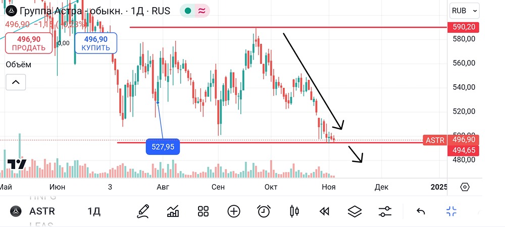 🐹Астра. #ASTR 🥜Присутствует желание добрать бумагу, но не нравится снижение волатильности. Ценовой диапазон мельчает. Цена прижимается к лою и может выйти вниз. Собственно говоря, как ранее показывал в Транснефти. 🥜По этой причине рисковать не хочу, хочется получить более чистый добор, нежели провалиться сразу же после усреднения. 🥜Так что жду факта. Если цена начинает выходить из поджатия вверх и продавец капитулирует в моменте, то добираю, если не истрачу кэш раньше!))) Если же цена вываливается вниз по действующей волне снижения, то продолжу наблюдать и ждать следующую точку добора! ❗️Не является индивидуальной инвестиционной рекомендацией. _________________________ 🐹Хомяк в Телеграм: https://t.me/+Kgh36Hk6zQ4yN2Ni 🐹Сканер волатильности акций от Хомяка: https://t.me/HunterMoexBot?start=khomyak