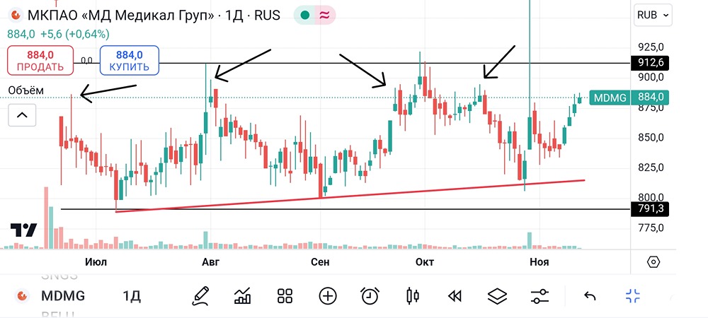 🐹Мать и Дитя. #MDMG 🥜Друзья, те кто брал спекулятивно в нижней части канала, пора брать бумагу на карандаш и начинать присматривать за позицией. 🥜Бумага зашла в верхнюю часть торгового канала. К хаям подходила на выносе, а чаще начинала разворачивать +-в этом ценовом диапазоне. 🥜Будьте по внимательнее! ❗️Не является индивидуальной инвестиционной рекомендацией. _________________________ 🐹Хомяк в Телеграм: https://t.me/+Kgh36Hk6zQ4yN2Ni 🐹Сканер волатильности акций от Хомяка: https://t.me/HunterMoexBot?start=khomyak