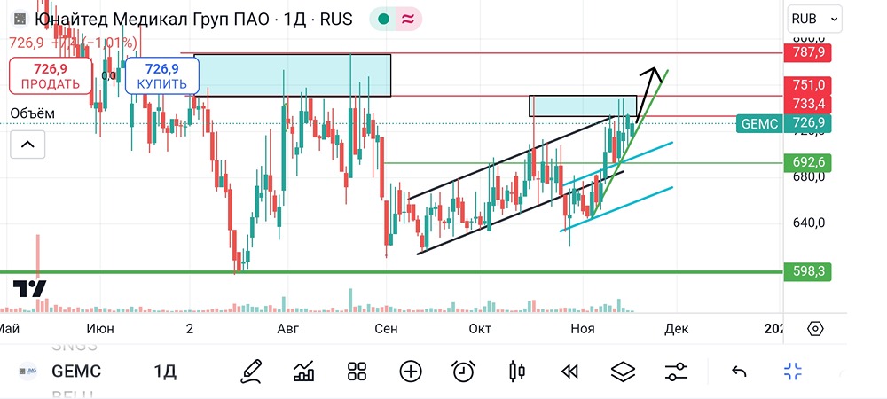 🐹ЮМГ. #GEMC 🥜Ну Гемсик машина, честно говоря. И на сегодняшней слабости открытия на графике ничего не поменялось. Как задрали угол локальной трендовой, так и держат. 🥜Не призываю сейчас покупать, всё же дело достаточно рисковое. Но вот если брали ранее, то есть смысл дождаться исхода. 🥜Если действительно или интересанты что-то тут мутят или инсайдеры работают, то можно получить топовый разгон. 🥜Сам в позиции и те 4,8,6,4%, которые бумага изо дня в день показывает, не забираю. Хочу увидеть развязку и быть в бумаге в этот момент. Надеюсь не подведёт!) ❗️Не является индивидуальной инвестиционной рекомендацией. _________________________ 🐹Хомяк в Телеграм: https://t.me/+Kgh36Hk6zQ4yN2Ni 🐹Сканер волатильности акций от Хомяка: https://t.me/HunterMoexBot?start=khomyak