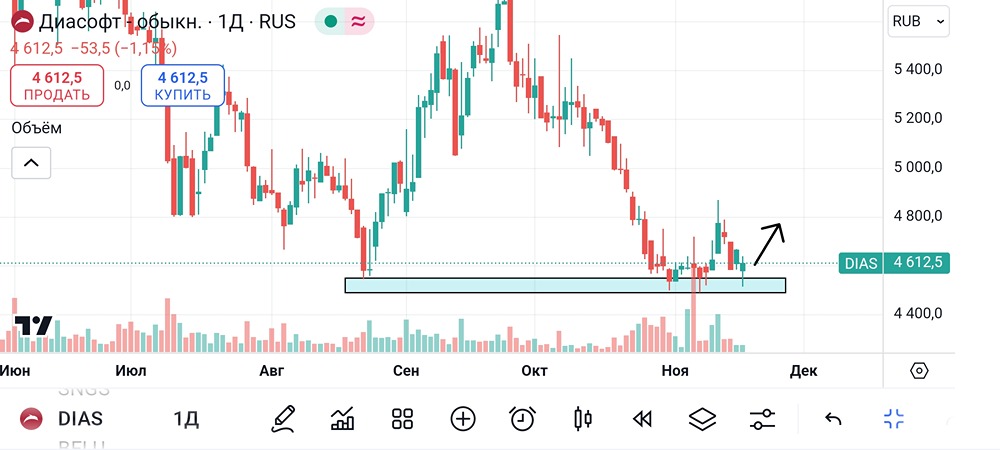 🐹Диасофт. #DIAS 🥜Мда, денёк сегодня такой, что и анализировать ничего не хочется, да и особо нечего. Большинство бумаг, говоря спортивноц терминологией, находятся в полу позиции. 🥜Ну вот Диасофт если кто брал ранее под среднесрок, тут вопросов нет, а вот те кто ранее на аномальной свече всё же спекульнули, то спекулятивно вновь можно брать на карандаш. 🥜Зона покупателя остаётся активной и если не купили там, то на формировании второй ростовой свечи можно планировать покупку. ❗️Не является индивидуальной инвестиционной рекомендацией. _________________________ 🐹Хомяк в Телеграм: https://t.me/+Kgh36Hk6zQ4yN2Ni 🐹Хомяк в Mondiara: https://mondiara.com/c/homyak_s_birzhi 🐹Сканер волатильности акций от Хомяка: https://t.me/HunterMoexBot?start=khomyak