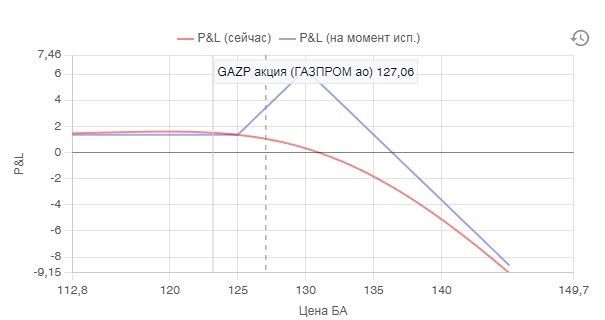 🚨Опционные стратегии на волатильном рынке. Часть 3 📢Пропорциональный колл спрэд- это опционная стратегия, которая заключается в покупке и продаже опционов колл с разными страйк-ценами и пропорциональными позициями. Эта стратегия предполагает прогнозирование движения цены базового актива в любом направлении. 🚀Например, вы ожидаете значительного изменения цены на акции компании GAZP в течение следующих нескольких недель. Вы можете купить опцион колл на эти акции со страйк- ценой 125 руб. за акцию. Затем вы можете продать опцион колл на эти акции со страйк-ценой 130 руб. за акцию. При этом Вы можете разместить пропорционально большую позицию на опционе колл со страйк-ценой 130 руб. за акцию, чем на опционе колл со страйк- ценой 125 руб. за акцию. 🚀Если цена акций превышает 125 руб. за акцию в момент истечения срока действия опциона колл, вы получите прибыль в размере разницы между ценой покупки опциона колл со страйк-ценой 125 руб. за акцию и ценой продажи акций. Если цена акций превышает 130 руб. за акцию в момент истечения срока действия опциона колл со страйк-ценой 130 руб. за акцию, вы получите дополнительную прибыль в размере разницы между ценой покупки опциона колл со страйк-ценой 130 руб. за акцию и ценой продажи опциона колл со страйк-ценой 125 руб. за акцию. ✅Однако, следует помнить, что пропорциональный колл спрэд связан с риском. Если цена акций движется в направлении, противоположном вашим ожиданиям, вы потеряете сумму, потраченную на покупку и продажу опционов колл. Поэтому перед принятием решения о пропорциональном колл спрэде необходимо тщательно проанализировать БА и рынок в целом