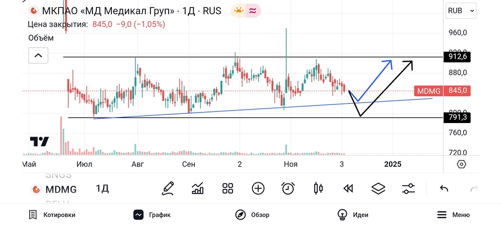 🐹Мать и Дитя. #MDMG 🥜Вновь сопративление не подвело, диапазон отработал, а предупреждение о фиксации оказалось верным. 🥜Можно вновь вернуть бумагу в разработку и приглядывать за бумагой на предмет реакции цены вблизи ключевых поддержек в рамках торгового канала. 🥜Судя по тенденции и структуре, синий сценарий выглядит более предпочтительным. ❗️Не является индивидуальной инвестиционной рекомендацией. _________________________ 🐹Хомяк в Телеграм: https://t.me/+Kgh36Hk6zQ4yN2Ni 🐹Сканер волатильности акций от Хомяка: https://t.me/HunterMoexBot?start=khomyak