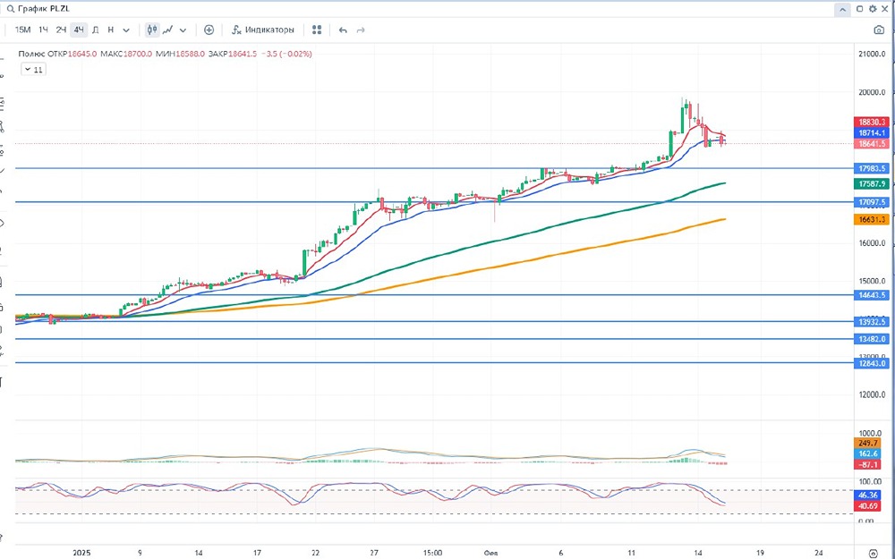 Добрый день уважаемые дамы и господа, инвесторы и трейдеры! 🚨«Полюс» — крупнейшая в России и одна из пяти ведущих мировых золотодобывающих компаний с одной из самых низких себестоимостью производства. Доказанные и вероятные запасы (P&P) оставляют 104 млн унций. Основана в 2006 году в ходе выделения золотодобывающих активов ОАО «ГМК Норильский никель». Основные предприятия компании расположены в Красноярском крае, Иркутской и Магаданской областях, а также в Республике Саха (Якутия) и включают 5 действующих рудников, золотоносные россыпи и ряд проектов в стадии строительства и развития. ✅Позитив: 📍1. Положительные финансовые результаты компании ( значительный рост выручки и чистой прибыли) 📍2. Рост цен на золото 📍3. Возможный запуск к 2029 месторождений "Чульбаткан" и "Чертово Корыто" Прогноз по добыче 0,6-0,7 млн унций ⛔Негатив: 📍1. Крупных месторождений открывается все меньше, содержание золота уменьшается. 📍2. Полюс подал иск на 10 млн рублей к российской 'дочке' Marubeni. 📍3. Санкционные риски 📍4. Высокие капитальные затраты на разработку новых месторождений 📢Дополнительно: 🥇1.По запуску Сухого Лога. Первая линия 2028, вторая линия 2029. 🥈2. Акционеры «Полюса» одобрили предложение совета директоров провести дробление акций с коэффициентом 1 к 10. 🥉3. Золотодобытчик понизил прогноз общих денежных затрат на текущий год. Теперь компания оценивает ТСС в диапазоне $425–$475 на унцию против прежних $450–$500 на унцию. Прогноз капзатрат в размере $ 1550–$ 1700 млн остается без изменений. 💵Дивиденды: Дивидендная политика Полюса подразумевает дивиденды каждые полгода по 30% от EBITDA, если отношение чистого долга к EBITDA будет меньше 2.5х (сейчас 0.8х). Если коэффициент превышает 2.5х, Совет директоров может принять решение о выплате дивидендов с учетом денежной позиции Общества, свободного денежного потока, прогноза на следующие периоды и рыночной конъюнктуры. Выплата дивидендов были отложены из-за сложной геополитической ситуации. 💴 - $PLZL : ФА Капитализация - 1417.0 млрд ₽ Кол-во акций ао– 133.6 млн Кол-во акций ап– 0.0 млн Р/Е - 9.36 P/S - 3.02 P/BV - (-20.9) ROE - 0.0% EV/EBITDA - 6.06 DSI 0.14 Данные взяты из официальных и публичных источников и отражают состояние за базовый год, а не на момент публикации поста. ⏰ - ТФ 1 DAY 🛠 ТА - скользящие, стохастик, объем, МАСD, уровни. 📈- тренд вверх ‼- Гистограмма MACD в положительных значениях, линии MACD находятся в положительных значениях. Стохастик находится в зоне перекупленности. 23 декабря цена пересекла снизу вверх 100ема и показывает восходящую тенденцию. При закрытии дня ниже 17243.2 возможен разворот в шорт. Закрытие ниже 17730 не очень желательно, но в данном случае возможен поход до 16900. ⏰ -ТФ 4 часа 🛠 ТА - скользящие, стохастик, объем, МАСD, уровни. 📈- тренд вниз ‼ - Гистограмма MACD в отрицательных значениях, линии MACD находятся в положительных значениях. Стохастик находится в районе средней линии и снижается. При закрытии выше 18830.3 возможен разворот в лонг. Все же пока вероятен сценарий снижения до 18500-18300. 📊За 6 (08.24-01.25) месяцев цена выросла более чем на 30% . Мин. Рrice = 11351.5 Мах. Рrice = 17438.0 📌 Цены смены тренда указаны в соответствии с ТФ и являются ориентировочными и со временем смещаются.📌 🃏Всем профита и до скорой встречи!🃏