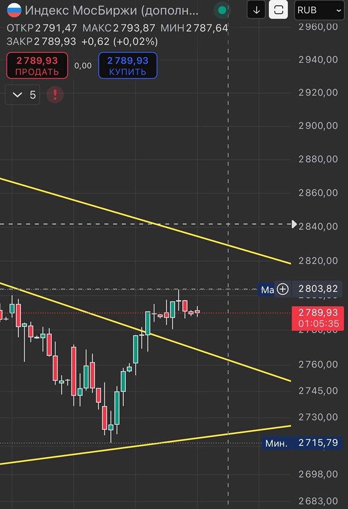 Вчера была попытка пробоя уровня 2800 пунктов , но там сходу включили снова роботов на продажу. Но скажу так, неплохо держимся. Но если пойдет коррекция я закрою все позиции и буду перезаходить снова у 2700-2730 пунктов. Пока наблюдаю. Набирать новые позиции только после уверенного пробоя и закрепа. Источник: https://t.me/+yzi4Kr0Z-kk0OTNi