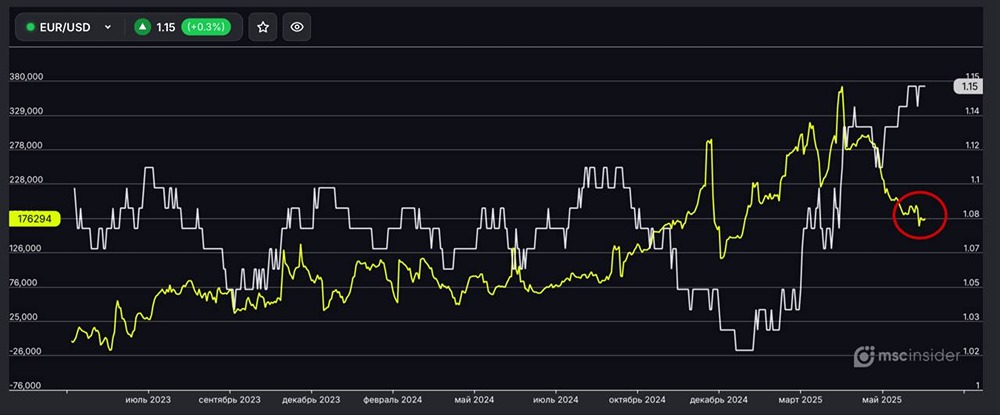 EUR/USD: Чистый лонг физических лиц достиг минимальных уровней января 2025 года