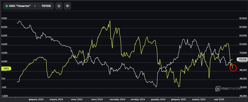 Минимумы с апреля: чистый лонг физических лиц по фьючерсам на Новатэк