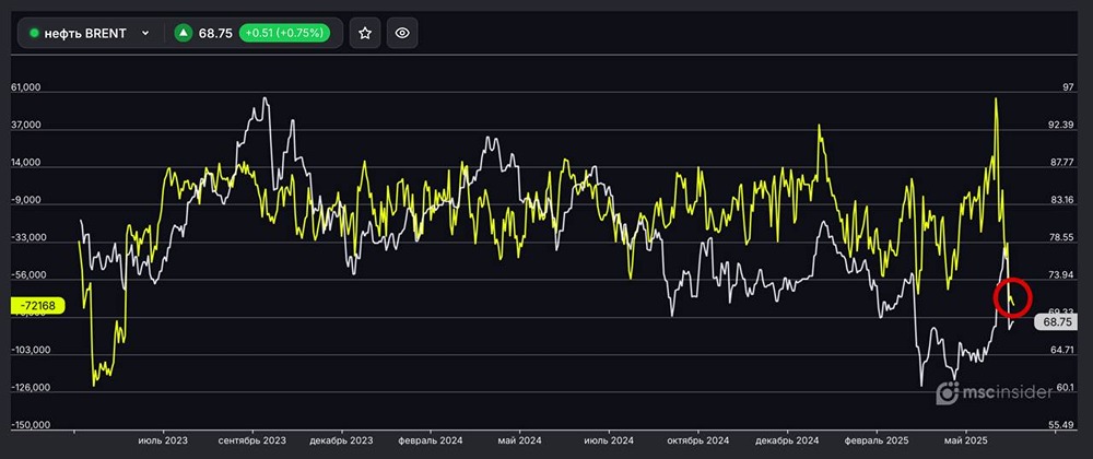 Brent: юрлица продолжают наращивать рекордный шорт с мая 2023 года по фьючерсам