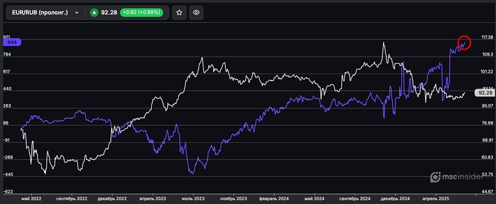 EUR/RUB: рост числа физических лиц в длинных позициях — исторический максимум