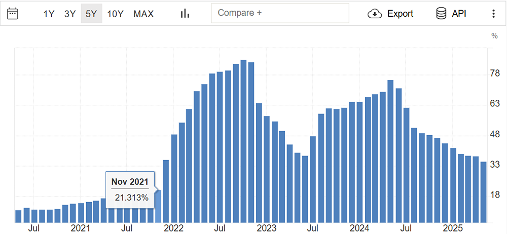 И что ужаснее всего, высокая инфляция выше 20% держится на протяжении почти 4 лет