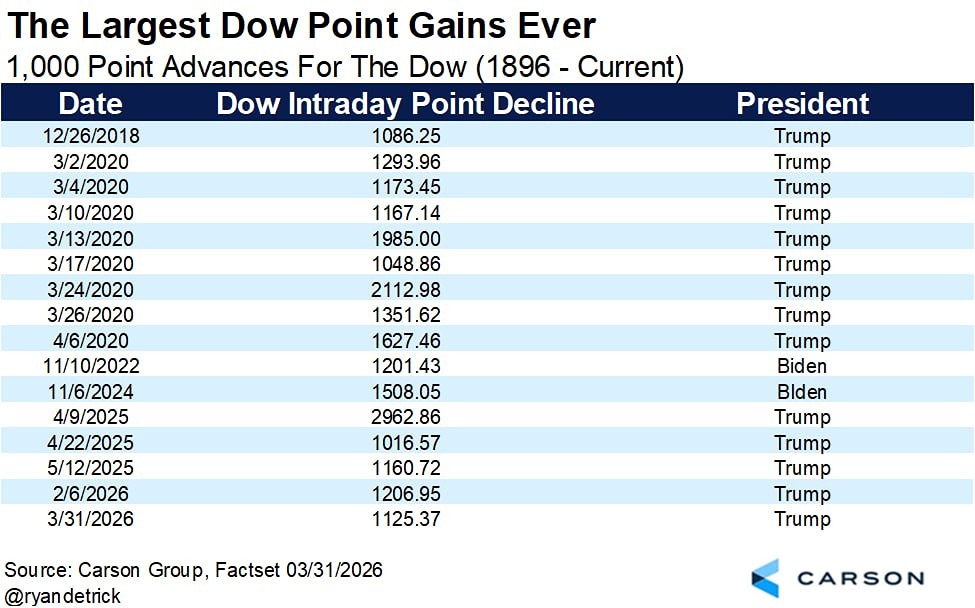 ⚡️ Это был 16-й в истории рост индекса Доу-Джонса на 1000 пунктов. У президента Трампа их 14.