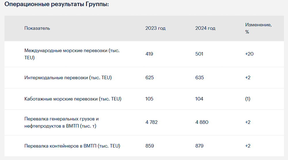 Группа FESCO представила операционные и финансовые результаты своей деятельности за 2024 год. Кроме того, Группа сообщила о завершении всех аудиторских процедур в отношении консолидированной отчётности по международным стандартам за 2024 год. Вот как изменились операционные и финансовые показатели Группы по сравнению с 2023 годом: Благодаря увеличению флота, парка фитинговых платформ и контейнеров, а также активной коммерческой работе и расширению географии перевозок, FESCO остаётся одним из крупнейших операторов на Дальнем Востоке. По итогам 2024 года: -FESCO заняла первое место по объёмам морских внешнеторговых перевозок в России и 36-е место в мировом рейтинге среди морских контейнерных перевозчиков по версии Alphaliner; -объёмы международных морских перевозок увеличились на 20% и составили 501 тыс. TEU; -объёмы интермодальных перевозок, несмотря на ограничения со стороны ОАО «РЖД» в связи с приоритетной отправкой экспортных неконтейнерных грузов, увеличились на 2% и составили 635 тыс. TEU; -отправки импортных контейнерных поездов на китайском направлении через сухопутные пограничные переходы увеличились почти вдвое — до 60 составов в месяц; -Группа обновила свой рекорд по объёмам перевалки контейнерных грузов в ВМТП, обработав в 2024 году 879 тыс. TEU, что на 20 тыс. больше, чем в рекордном 2023 году. ВМТП уже пять лет подряд удерживает лидерство в России по объёму контейнерных грузов. В 2024 году FESCO продемонстрировала высокие финансовые показатели: -выручка Группы увеличена на 8% и составила 184 978 млн руб.; -показатель EBITDA увеличен на 2% и составил 54 498 млн руб.; -показатель «Чистый долг / EBITDA» остается на рекордно низком уровне в размере 0,5х на 31.12.2024; -благодаря высоким операционным показателям, укреплению лидирующих позиций на рынке контейнерных перевозок и низкой долговой нагрузке рейтинговое агентство ООО «НКР» повысило долгосрочный кредитный рейтинг FESCO с «А» до «AА» со «стабильным» прогнозом, а рейтинговое агентство «Эксперт РА» впервые присвоило FESCO кредитный рейтинг на уровне «АА» со «стабильным» прогнозом. Группа продолжила наращивать активы для расширения географии перевозок, развития новых сервисов и обеспечения основной деятельности: -контейнерный парк увеличен на 17% и достиг рекордного показателя почти 120 тыс. единиц. Установлен новый рекорд по объему контейнерного парка в управлении, который теперь составляет более 200 тысяч TEU, при среднем возрасте контейнера до пяти лет; -количество фитинговых платформ в управлении Группы на конец 2024 года достигло рекордного показателя почти 15 тыс. единиц в результате сделки по приобретению компании ООО «Логбокс»; -в состав флота принято два новых контейнеровоза для работы на каботажных линиях на Дальнем Востоке и развития внешнеторговых перевозок. В результате обновления флота в 2024 году его средний возраст снизился на 10% и составил 15,5 лет; -приобретено 11 новых кранов типа RTG, что увеличило крановый парк ВМТП на 25%, до 56 единиц. Вместе с тем Группа отмечает снижение чистой прибыли более чем на 30% относительно уровня 2023 года, обусловленное следующими единовременными и макроэкономическими факторами: -рост амортизационных отчислений пропорционально увеличению стоимости активов в результате приобретения новых судов большей вместимости, контейнеров и существенного увеличения парка подвижного состава; -рос