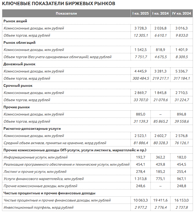Каковы основные финансовые показатели Московской биржи за первый квартал 2025 года?