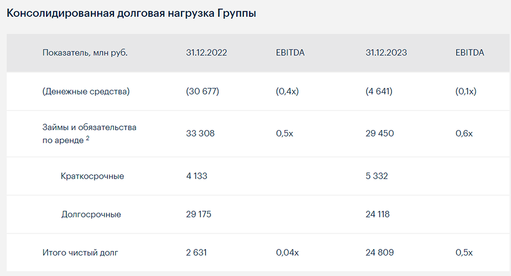 Финансовые и операционные результаты деятельности Транспортной группы FESCO за 2023 год. Группа также сообщает о завершении всех аудиторских процедур в отношении консолидированной финансовой отчетности по международным стандартам за 2023 год. Полная версия отчетности с примечаниями опубликована на сайте www.fesco.ru в разделе «Акционерам и инвесторам». По итогам 2023 года за счет запуска новых сервисов, увеличения количества флота, парка фитинговых платформ и контейнеров FESCO остается крупнейшим логистическим оператором на Дальнем Востоке России: -объемы международных морских перевозок увеличены на 23% и составили 419 тыс. TEU; объемы интермодальных перевозок увеличены на 23% и составили 625 тыс. TEU; -объемы каботажных перевозок увеличены на 24% и составил 105 тыс. TEU; объемы железнодорожных контейнерных перевозок увеличены на 17% и составил 753 тыс. TEU; -Группа достигла рекордных объемов перевалки контейнерных грузов во «Владивостокском морском торговом порту», контейнерооборот вырос до 859 тыс. TEU. ВМТП уже четыре года подряд удерживает лидерство по контейнерообороту в России. В 2023 году FESCO продемонстрировала стабильно высокие финансовые показатели: -выручка Группы увеличена на 6% и составила 172 004 млн руб.; -показатель EBITDA составил 53 607 млн руб.; показатель «Чистый долг / EBITDA» остается на рекордно низком уровне в размере 0,5х на 31.12.2023; -благодаря высоким операционным показателям и укреплению лидирующих позиций на рынке контейнерных перевозок рейтинговое агентство ООО «НКР» повысило долгосрочный кредитный рейтинг FESCO с «BBB+» до «A» с «позитивным» прогнозом. Группа продолжила наращивать активы для расширения географии перевозок и развития новых сервисов: -в состав транспортного флота принято восемь новых судов для развития каботажных и внешнеторговых перевозок; -контейнерный парк увеличен на 22% и достиг рекордного показателя в 101 751 единиц; -парк фитинговых платформ увеличен на 25% и достиг рекордного показателя в 13 018 единиц. Чистый долг по состоянию на 31 декабря 2023 года увеличился с 2 631 млн руб. до 24 809 млн руб. в сравнении с 2022 годом за счет мероприятий по приобретению активов. Обязательства Группы: -26 515 млн руб. по кредитам и займам; -2 935 млн руб. по договорам аренды. Источник: www.fesco.ru