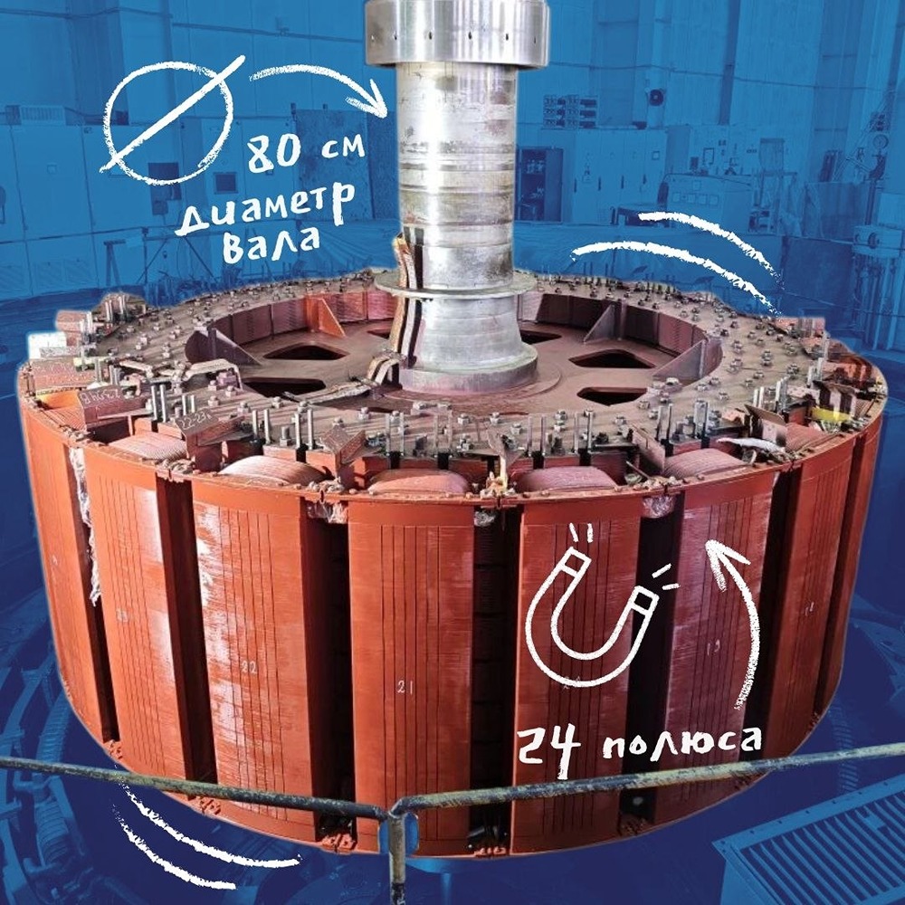 Представьте многотонную деталь высотой с небольшой дом, которая установлена с миллиметровой точностью и совершает 250 оборотов в минуту. Хотя ротор гидроагрегата в представлении не нуждается. В ходе капитального ремонта на Серебрянской ГЭС-2 этот ротор прошел все необходимые этапы восстановительных работ — заводских и станционных — и занял свое место. Затем энергетики вернули на место крестовину и провели центровку агрегата. Останется собрать подшипники — и можно приступать к наладочным работам. После этого генератор будет включен в сеть и наберет нагрузку. [Наш канал в ТГ](https://t.me/tgc1_energy) [Наш канал в ВК](https://vk.com/tgc1ru)