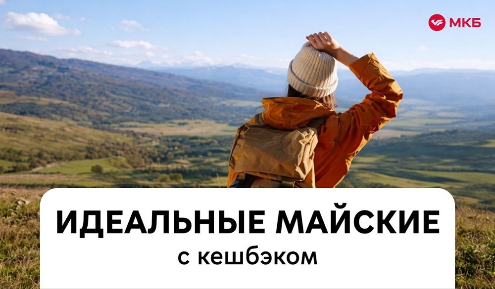Кешбэк на ваши майские Забирайте подборку и планируйте отдых с максимальной выгодой: — Tripster — кешбэк 20% баллами «МКБ Бонус» на все покупки — Aviakassa — 15% на отели, 5% на ж/д билеты и 4% на авиабилеты — Travelata — 5% на все покупки — Онлайнтурс — 4% на первую покупку Наличие акций и подробности смотрите в «МКБ Онлайн» на экране «Персональные предложения». Раздел формируется индивидуально, ваш личный список может отличаться. [МКБ в MAX](https://max.ru/mkbbank)