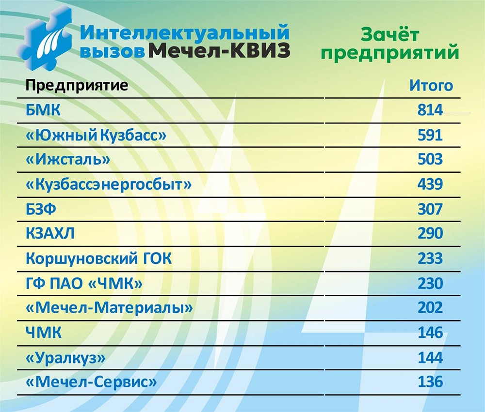 Сегодня — ваш день! Победителем первого сезона «Мечел-КВИЗ»: «Интеллектуальный вызов!» среди предприятий становится БЕЛОРЕЦКИЙ МЕТАЛЛУРГИЧЕСКИЙ КОМБИНАТ. Интеллект, командная работа и мощная поддержка болельщиков привели к победному результату. Поздравляем! К коллективу предприятия отправляется переходящий приз – «Сова». Наш «Мечел-КВИЗ» показал, что интеллектуальное соперничество и командное единство объединяют предприятия не меньше, чем производственные достижения. Спасибо командам, болельщикам и авторам вопросов за активность и интерес к новому формату. До встречи в следующем сезоне! [Наш тг канал](https://t.me/paomechel) [Мы в ВКонтакте](vk.com/pao_mechel ) [Мы на Рутубе](rutube.ru/channel/23832209) [Мы в Дзене](dzen.ru/mechel) [Наш сайт](mechel.ru)