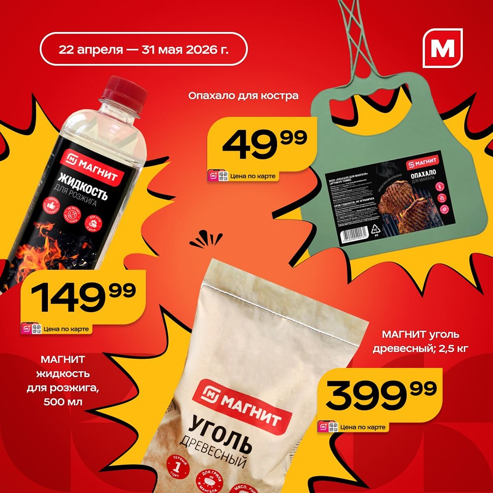 Проверяем готовность к пикнику Еду купили, напитки охладили... Стоп, а чем разжигать костёр? Чтобы не бегать по разным магазинам, покупайте всё необходимое в «Магните»: ➠ Одноразовые вилки, ложки, посуду и наборы «Моя цена» ➠ Жидкость для розжига и древесный уголь «Магнит» ➠ Опахало для костра ➠ Универсальную решётку-гриль ➠ Сборный мангал «Дача» с 6 шампурами ➠ Пищевую фольгу «Моя цена» ➠ Мешки для мусора «Моя цена» [Подписывайтесь на Магнит в Max](https://max.ru/magnitretail)