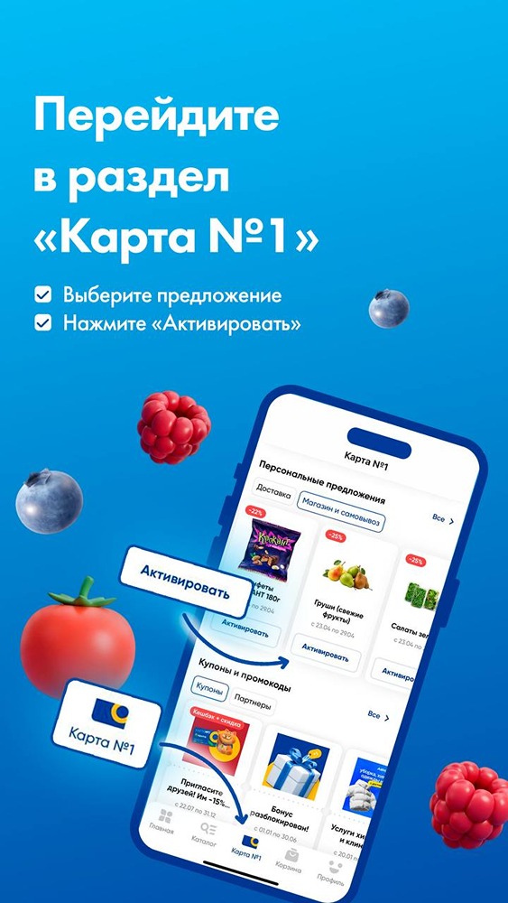 А вы знали, что ваши персональные скидки обновляются каждую неделю и в приложении, и в личном кабинете на сайте «Лента»? Воспользоваться просто, всего за 3 шага: 1. Зайдите в раздел «Карта №1» в приложении. Оно находится на главной странице внизу. Или в раздел [«Персональные предложения»](https://lentaapp.go.link/personalpromo?adj_t=1z83qo7q&adj_deep_link=lentochka%3A%2F%2Fpersonalpromo) мобильной версии. 2. Активируйте выбранные скидки. 3. Отсканируйте Карту №1 на кассе. Готово! Скидка применится автоматически. Проверьте обновления прямо сейчас [в личном кабинете на сайте](https://lenta.com/my-account/personalpromo?utm_source=telegram.own&utm_medium=social&utm_campaign=personalpromo_april). А также в приложении. [Ссылка для Android](https://www.rustore.ru/catalog/app/com.icemobile.lenta.prod?utm_source=telegram.ad&utm_medium=social&utm_campaign=lenta_april) [Мы в Max](max.ru/lentacom)