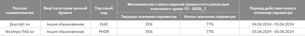 Новость: негативная. Об изменении риск-параметров по акциям. В связи с корпоративными событиями будут изменены следующие риск-параметры. Источник: www.moex.com