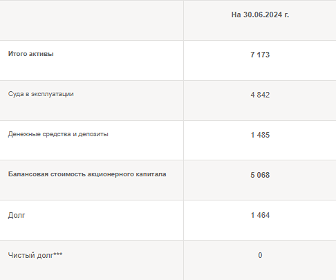 Итоги работы ПАО «Совкомфлот» в I полугодии 2024 года. ПАО «Совкомфлот» (группа компаний СКФ; тикер: FLOT) опубликовало обобщенную консолидированную финансовую отчетность за шесть месяцев, закончившихся 30 июня 2024 года. По результатам отчетного периода компания заработала 31,5 млрд рублей чистой прибыли по МСФО (или 13,28 рублей на акцию), что было достигнуто благодаря высокому уровню обеспеченности флота долгосрочными контрактами, а также сохранению высокой рыночной конъюнктуры танкерного рынка. На фоне усиления санкционного давления со стороны недружественных стран компания продолжает системную работу по преодолению возникающих вызовов. Чистая прибыль в рублях по данным консолидированной финансовой отчетности по МСФО, подготовленной в соответствии с требованиями Федерального закона «О консолидированной финансовой отчетности» от 27.07.2010 №208-ФЗ, скорректированная в соответствии с Распоряжением Правительства Российской Федерации от 29.05.2006 №774-р. Прибыль до уплаты процентов, налога на прибыль, износа и амортизации на скорректированной основе. Чистый долг включает обеспеченные банковские кредиты, прочие займы и обязательства по финансовой аренде за вычетом денежных средств и их эквивалентов и банковских депозитов. Источник: www.sovcomflot.ru*