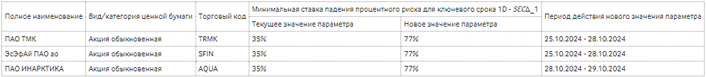 Об изменении риск-параметров по акциям