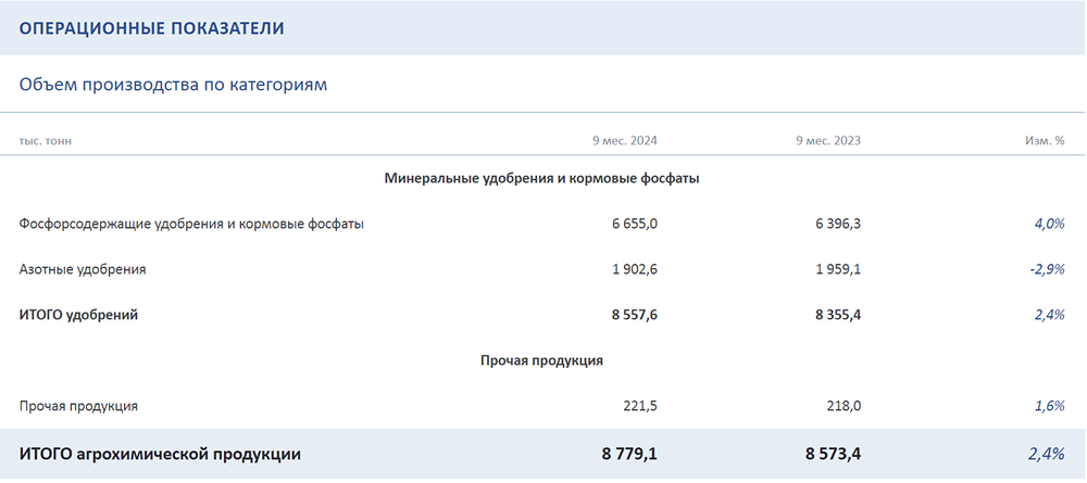 ФосАгро публикует операционные и финансовые результаты за 9 месяцев 2024 г.
