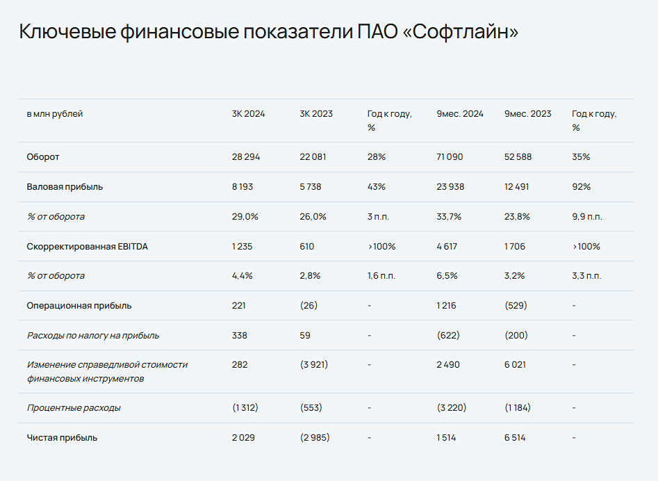 ПАО «СОФТЛАЙН» сообщает о росте чистой прибыли до 2 млрд рублей по итогам 3 квартала 2024 года и подтверждает прогноз роста компании на 2024 год