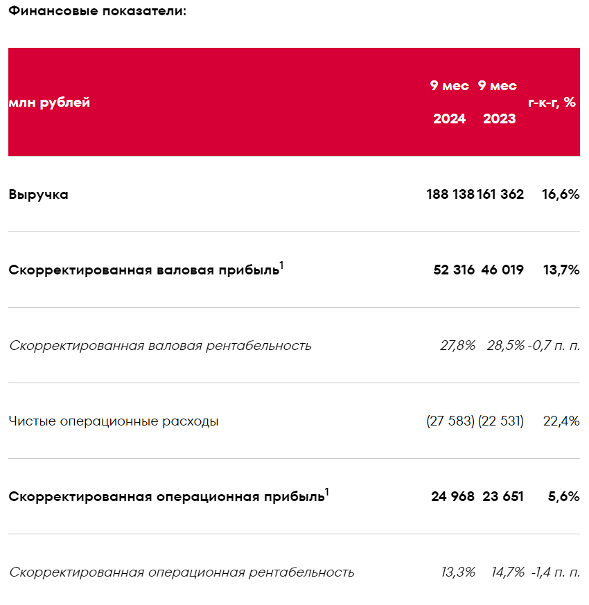 Группа «Черкизово» объявляет финансовые результаты за девять месяцев 2024 года. Группа «Черкизово» (MOEX: GCHE), крупнейший в России вертикально интегрированный производитель мясной продукции, объявляет неаудированные консолидированные финансовые результаты по МСФО за девять месяцев 2024 года. Основные корпоративные события третьего квартала: Компания успешно завершила строительство нового завода технических фабрикатов в Ефремове (Тульская область). Инвестиции в его запуск составили 5 млрд рублей. Завод является первым этапом проекта по созданию в Ефремове крупнейшего в России мясоперерабатывающего кластера. Группа «Черкизово» завершила реконструкцию кластера бройлерных ферм «Ширинский» (Тульская область) площадью 100 тыс. кв. м. Проект, инвестиции в который составили 1 млрд рублей, позволит производить дополнительно 35 тыс. тонн мяса птицы в год. В 2024 году Группа «Черкизово» увеличила посевные площади на 15% до 255 тысяч га за счет появления сельскохозяйственных земель в новых регионах. Завершив уборочную кампанию значительно раньше, чем в прошлом году (уже к концу октября), Компания собрала 868 тысяч тонн урожая, что на 10% меньше, чем годом ранее, в связи с изменением структуры посевных площадей (увеличение посевов сои и снижение посевов пшеницы). Площадь посевов сои увеличилась на 47% до 120,3 тысяч га, валовый сбор увеличился на 19% до 247 тыс. тонн. Из-за сложных погодных условий и засухи в некоторых регионах урожайность озимой и яровой пшеницы и сои оказалась ниже прошлогодней (5,0, 4,4, и 2,1 тонны с га против 6,1, 5,6, и 2,5 тонны с га соответственно). Аналитическое Кредитное Рейтинговое Агентство повысило кредитный рейтинг Компании до уровня АА(RU) со стабильным прогнозом. Компания успешно разместила биржевые облигации общим номинальным объемом 7 млрд рублей со сроком погашения через три года. В результате высокого спроса книга заявок была переподписана более чем в три раза. Комментарий Компании: «Благодаря успешной и своевременной интеграции стратегических приобретений в третьем квартале 2024 года мы продолжаем демонстрировать двузначный рост нашей выручки по отношению к аналогичному периоду прошлого года. В третьем квартале одними из главных проблем остаются инфляция на сырье, нехватка рабочей силы и сбои в цепочке поставок наряду с ценовым давлением на рынке курицы. Именно в такие периоды наша вертикальная интеграция и сильные позиции на рынке брендированной продукции и в других каналах с высокой добавленной стоимостью обеспечивают защиту и стабильность бизнеса, позволяя нам продолжать фокусироваться на наших среднесрочных и долгосрочных приоритетных задачах. Мы также продолжаем предпринимать стратегические шаги по контролю за издержками и инвестировать в дальнейшее углубление вертикальной интеграции. Одним из таких шагов стал запуск в Тульской области завода технических фабрикатов. Это в значительной мере снизило нашу зависимость от внешних поставщиков мясокостной муки и других основных кормокомпонентов. Однако продолжающийся рост затрат на упаковочные материалы, увеличившиеся тарифы на логистику, растущие расходы на производственный персонал и нехватка рабочей силы по-прежнему оказывают влияние на нашу прибыльность. Следуя нашей цели по укреплению продовольственной безопасности страны через создание новых высокоте