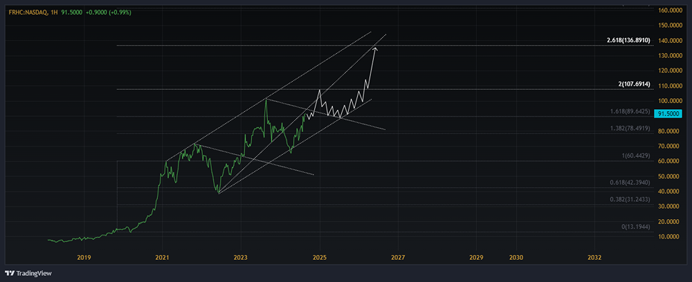 Акция: FREEDOM Тикер: FRHC ТФ: 1Н [неделя] Среднесрочный технический расчёт. Если считаешь, что победят лонгисты - ставь быка под постом, если шортисты - ставь медведя. Автор: MONDIARA_Trading [Не является индивидуальной инвестиционной рекомендацией]