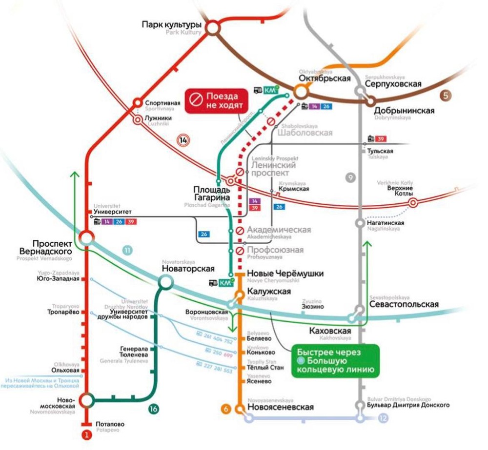 В марте на оранжевой ветке метро по выходным будет закрыт участок между станциями «Новые Черемушки» и «Октябрьская». Это произойдет в следующие даты: с 1 по 2 марта; с 15 по 16 марта; * с 22 по 23 марта.