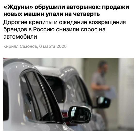 Продажи новых автомобилей упали на 25%, что стало самым низким показателем за последние два года. Эксперты полагают, что основными причинами снижения спроса стали более высокие ставки по автокредитам, а также слухи о возможном возвращении в Россию некоторых ушедших брендов.