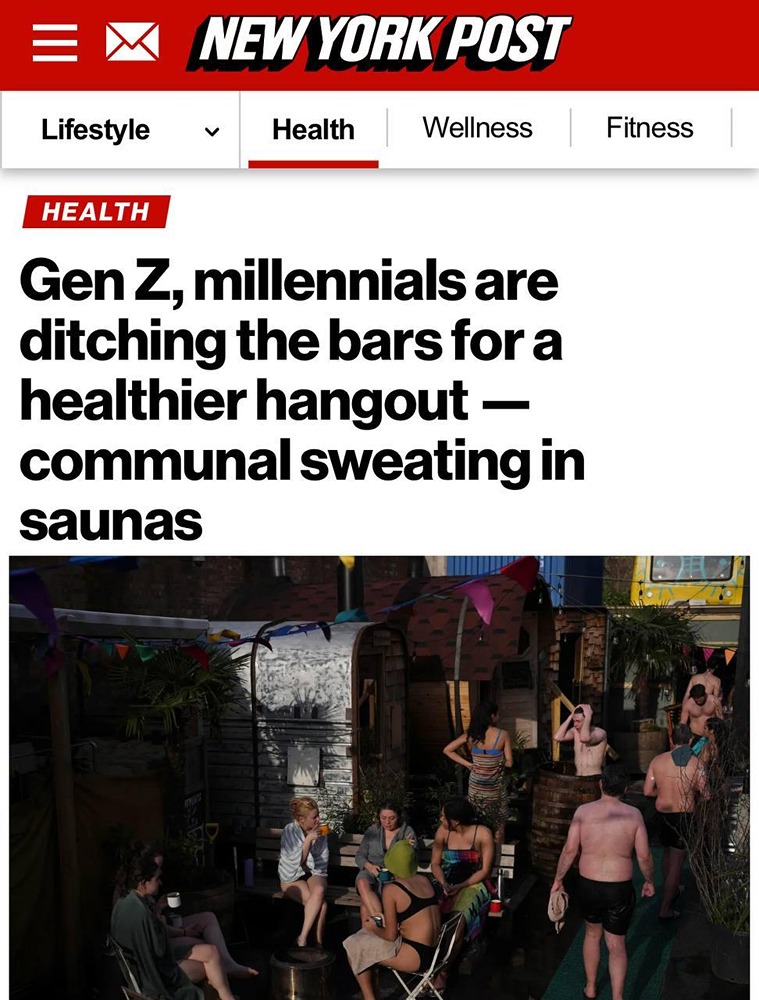Зумеры и миллениалы всё чаще выбирают баню в качестве альтернативы барам и тусовкам. Этот новый тренд обусловлен усталостью от работы и рутины. Теперь вместо того, чтобы употреблять алкоголь, молодежь предпочитает проводить время в сауне, наслаждаясь ароматом эвкалипта и новыми знакомствами с такими же уставшими людьми. В Великобритании за последние два года количество общественных саун выросло на 300%. Бизнесмены активно используют эту тенденцию, открывая всё больше подобных заведений, чтобы заработать на горячем паре.