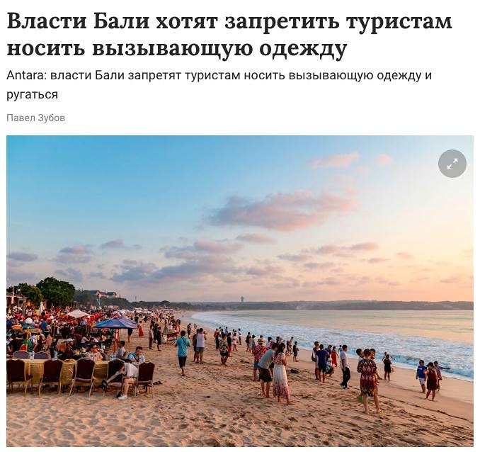 Власти Бали ввели новые правила для туристов и запретили нецензурную лексику. Теперь иностранные гости должны проявлять уважение к местной культуре и традициям, носить скромную одежду в общественных местах и поддерживать чистоту. Кроме того, иностранцы обязаны пользоваться услугами лицензированного гида, который хорошо знает местные обычаи и традиции. Также был установлен обязательный сбор в размере 150 тысяч индонезийских рупий (около 765 рублей) за пребывание на территории острова. Кроме того, на Бали теперь запрещено сквернословить.