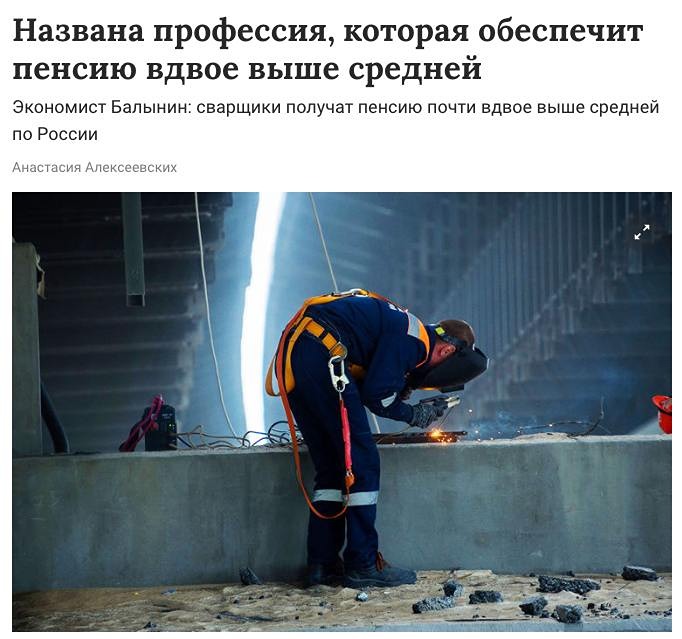 Сварщикам обещают пенсию, которая почти в два раза превышает среднюю по России. По подсчетам экономистов, высококвалифицированные сварщики зарабатывают около 250–300 тысяч рублей в месяц, что обеспечивает им высокий размер страховой пенсии. За год они набирают около десяти пенсионных баллов. Таким образом, за 25 лет работы сварщики могут рассчитывать на пенсию в размере 45,3 тысячи рублей. А те, кто трудится на вредных производствах, могут выйти на пенсию на десять лет раньше.