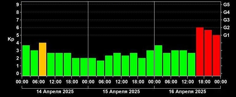 На Землю вновь надвигается сильная магнитная буря. В среду, 16 апреля, ожидается магнитная буря уровня G2. По прогнозам учёных, около 15:00 геомагнитный фон резко изменится.