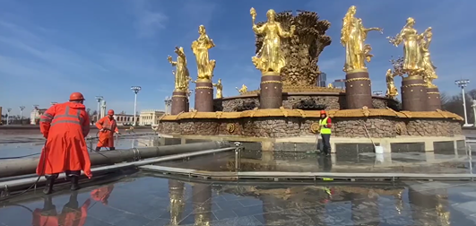 Знаменитые фонтаны на ВДНХ готовят к запуску. «Дружба народов», «Каменный цветок» и «Колос», а также ещё 14 фонтанов, расположенных на центральной аллее, очищают специальными составами. Это делается вручную, так как в их конструкции много позолоченных скульптур, а также декоративных элементов из меди и бронзы.