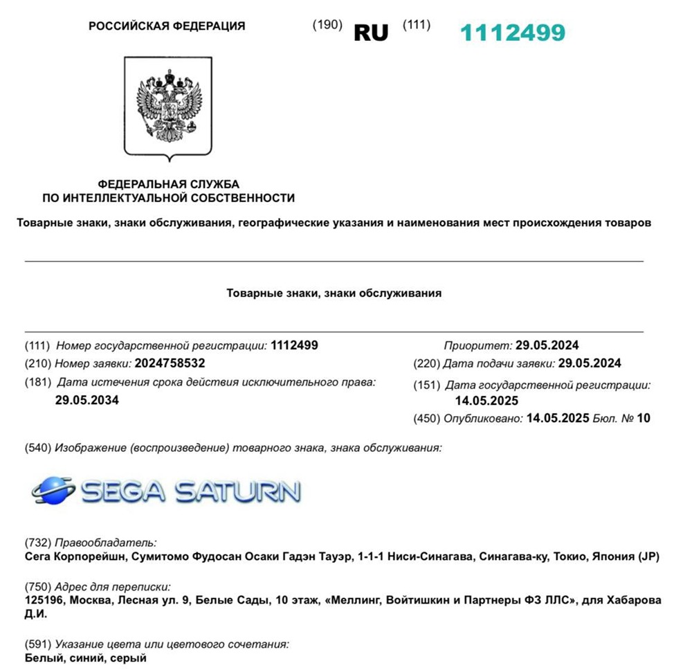 Sega зарегистрировала в Роспатенте товарный знак. В 2022 году компания Sega, которая прекратила свою деятельность в России, зарегистрировала в Роспатенте право на использование товарного знака, связанного с игровой приставкой Sega Saturn. О том, когда компания планирует вернуться на российский рынок, пока не сообщается.