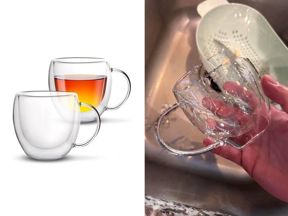 Трендовые стеклянные кружки с двойными стенками теряют прочность при мытье. Проблема в том, что между стенками находится воздух. Если внутренняя перегородка ломается, кружка становится опасной. Особенно, когда внутри находится рука с губкой.