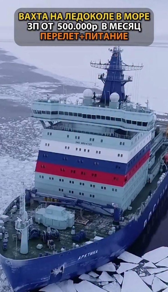 За работу на ледоколе вам заплатят 500 000 рублей. График работы — 30 дней работы, затем 30 дней отдыха. Опыт работы и образование не требуются — вас всему научат. Вам предоставят питание, оплатят перелёт и обеспечат полный социальный пакет.