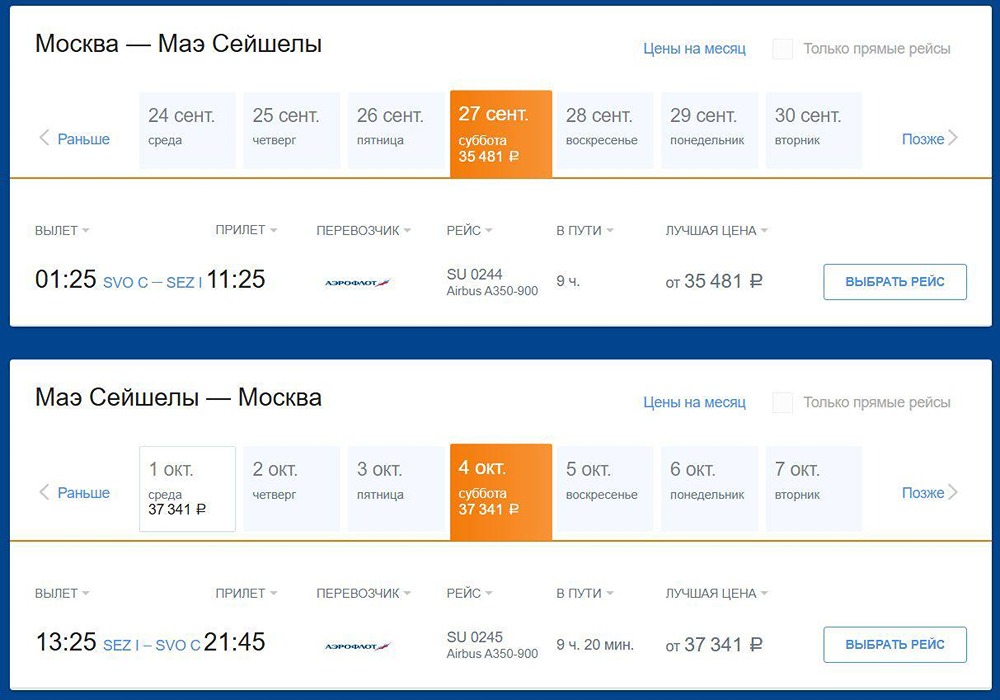«Аэрофлот» возобновляет прямые рейсы из Москвы на Сейшелы. Полеты начнутся 27 сентября. Вылеты запланированы по средам и субботам. Стоимость билетов в обе стороны — от 72 800 рублей.