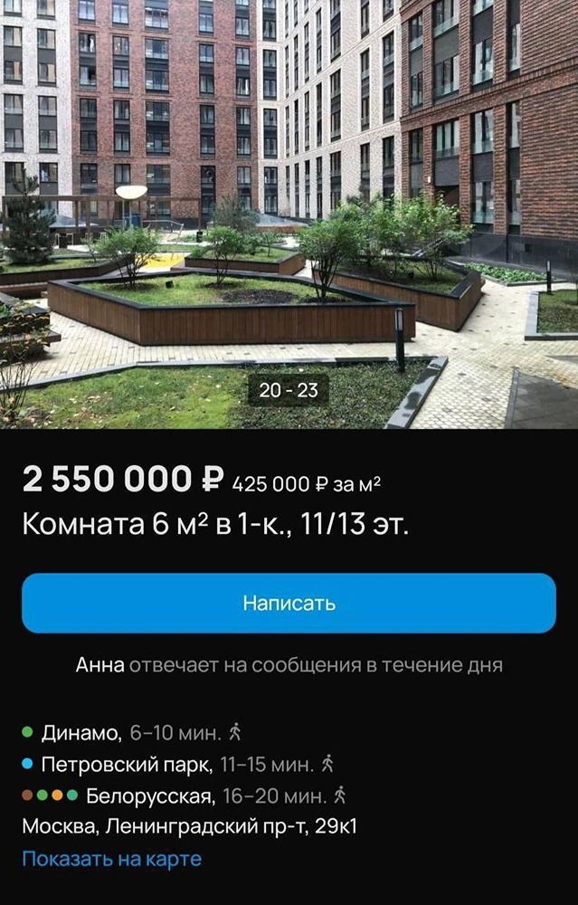 В Москве нашли кладовку-квартиру за 2,5 миллиона рублей. Площадь этой необычной жилплощади составляет всего 6 квадратных метров, из которых 2,9 — жилая. В крохотной комнате разместились кровать, душ, стиральная машина, микроволновка и холодильник. Однако санузел находится на первом этаже в лобби здания.