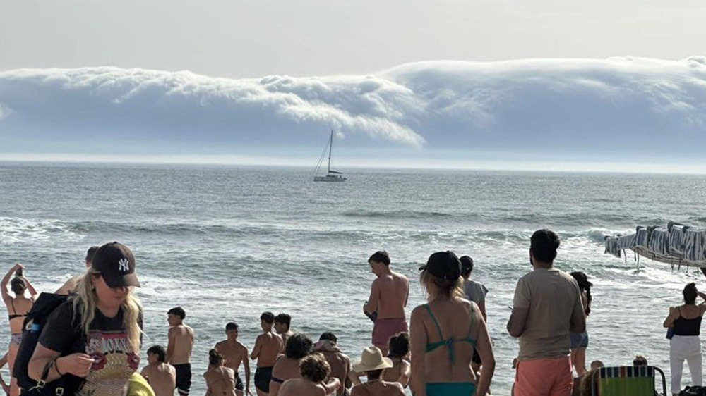 В трёх городах Португалии произошло нечто невероятное — их накрыло огромное облако, похожее на цунами. Это явление, которое называется «рулонное облако» или «грозовой воротник», встречается довольно редко и обычно является предвестником сильного шторма или урагана.