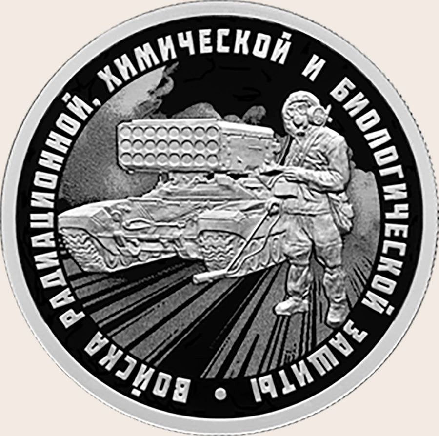 Банк России выпустил в обращение монеты с военными и огнемётной системой ТОС «Солнцепёк» номиналом 1 рубль из 8 граммов чистого серебра. На двух других монетах из этой серии изображены эмблема войск РХБЗ, военный в защитном костюме с прибором химической разведки и машина ТМС-65У. Каждая из трёх монет выпускается тиражом 5000 экземпляров. Ранее в серии «Вооружённые силы» ЦБ выпустил монеты, посвящённые инженерным, мотострелковым, танковым, космическим и воздушно-десантным войскам, а также войскам радиоэлектронной борьбы, частям ядерного обеспечения, надводным и подводным силам Военно-морского флота, морской пехоте, авиации и Ракетным войскам стратегического назначения. [mondiara.com](https://mondiara.com)