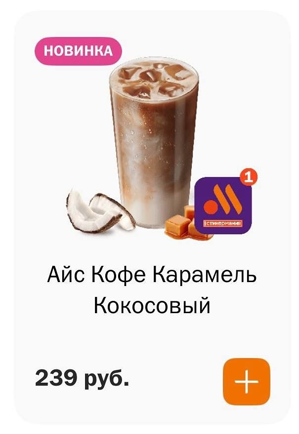 💥 Свежую линейку напитков завезли во «Вкусно — и точка». Среди новинок: Бамбл Айс кофе, лимонад Дольче манго и Айс кофе с кокосом.