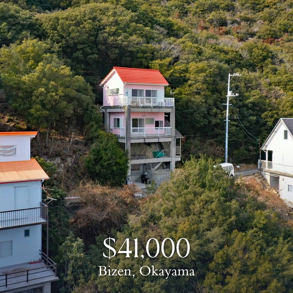 В Японии продают двухэтажный дом на горе с видом на океан всего за 3 млн рублей. Дом находится прямо у бухты в городе Бидзен — внутри несколько просторных комнат с высокими потолками и балконами, а на кухне можно каждый день ужинать под океанские закаты.