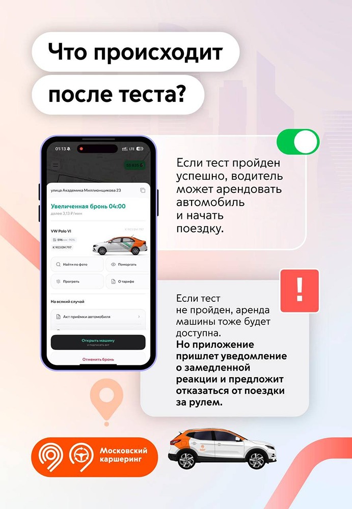 Операторы каршеринга в Москве внедрили тесты на реакцию перед поездкой