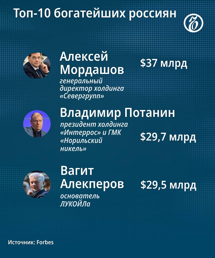 Forbes назвал самых богатых россиян в 2026 году
