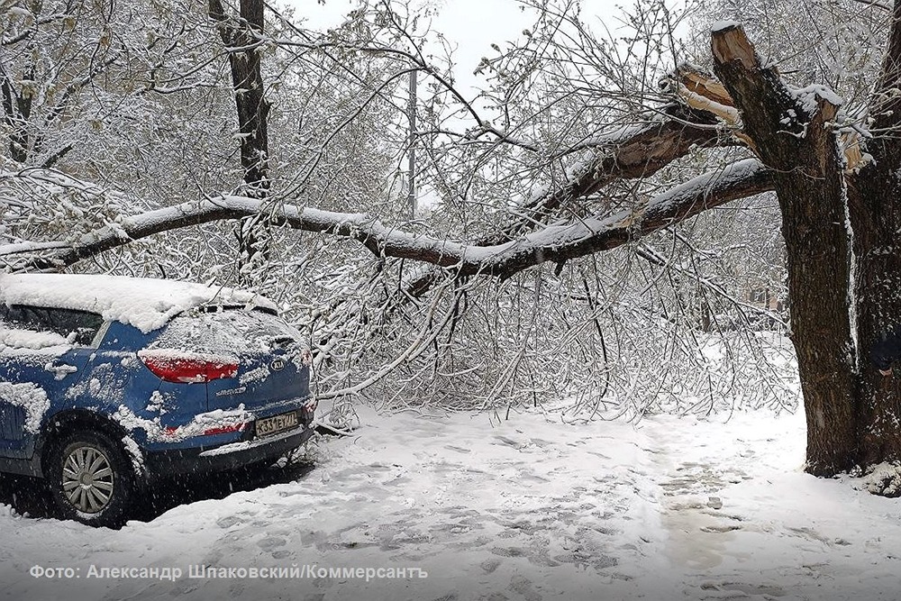 Первые последствия апрельского снегопада в Москве