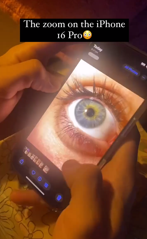 С новым iPhone 16 Pro пользователи могут рассмотреть радужку глаза с невероятной четкостью, как при использовании микроскопа. Тем не менее, внимание следует уделить высокому уровню яркости вспышки, чтобы избежать возможного ослепления при съемке на близком расстоянии.