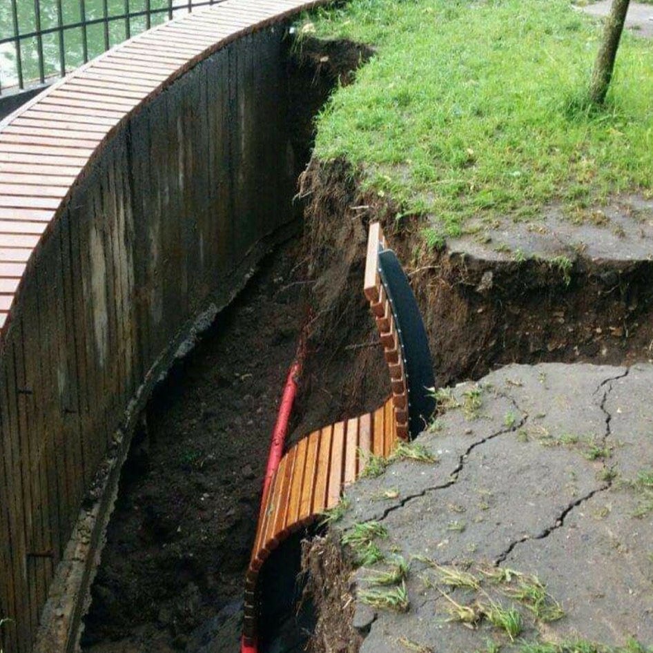 В Черкизовском парке наблюдается провал грунта. Ремонтные работы в этом месте завершились всего год назад.
